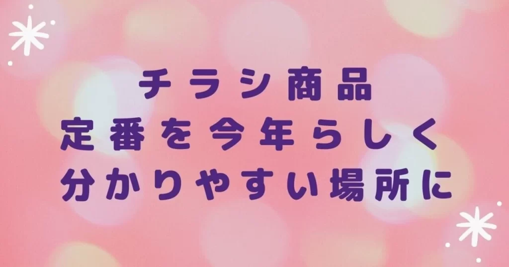 【集客力を上げる方法】 チラシ商品 定番を今年らしく 分かりやすい場所に