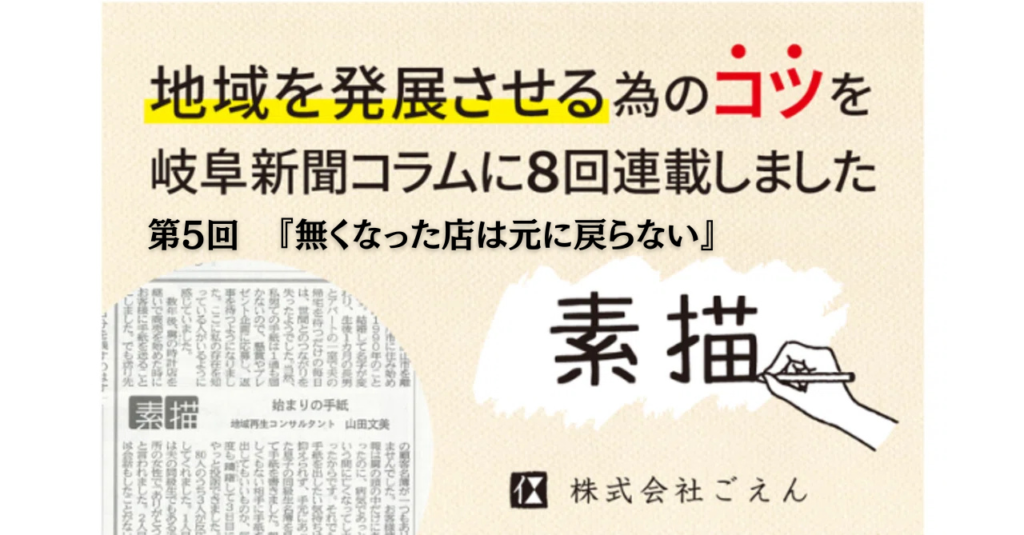 岐阜新聞朝刊のコラム「素描」第5回 2021年4月3日『無くなった店は元に戻らない』