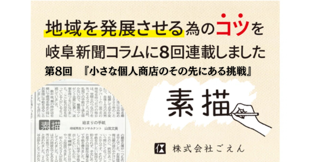 岐阜新聞朝刊のコラム「素描」第8回 2021年4月24日『小さな個人商店のその先にある挑戦』