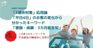 【集客力を上げる方法実例】「3連休対策」応用論 「平日4日」のお客の変化から分かったキーワード「家族・体験・3カ月前告知」