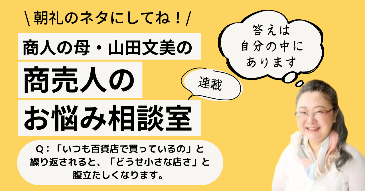 Q:「いつも百貨店で買っているの」と繰り返されると、「どうせ小さな店さ」と腹立たしくなります。
