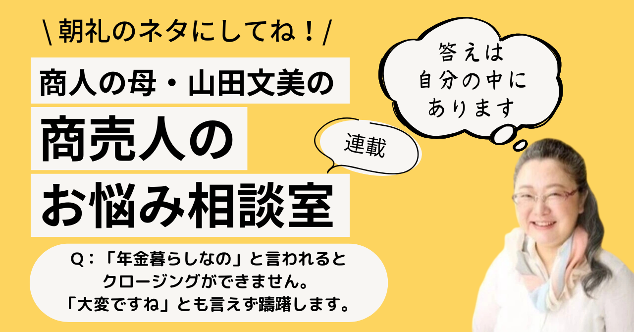 Q:「年金暮らしなの」と言われると、クロージングができません。「大変ですね」とも言えず躊躇します。
