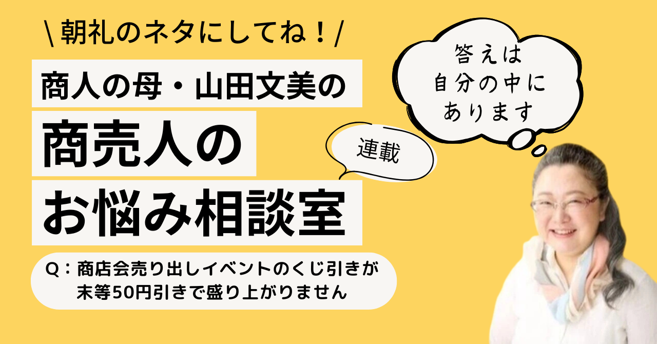 50円でも価値を感じさせることが商売人魂です。50円が当たってうれしいと思わせることもできなくて、盛り上がりませんとか言っている場合じゃありません。お客さまが「私を喜ばせてよ」と、あなたの商売人としてのセンスを問うているのです。