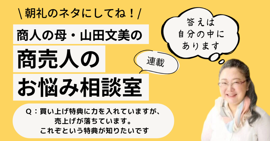 【実例】Q:買い上げ特典に力を入れていますが、売上げが落ちています。これぞという特典が知りたいです