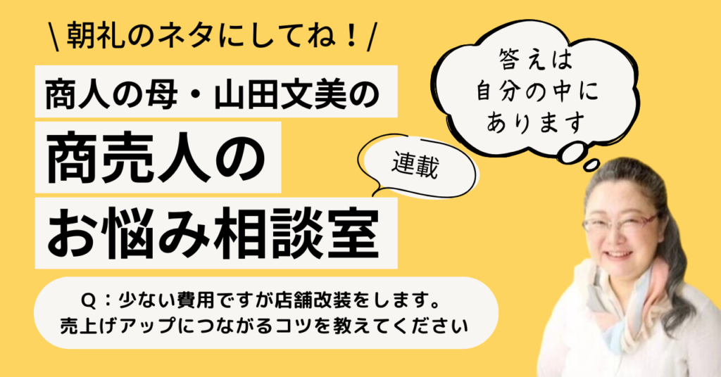 Q:少ない費用ですが店舗改装をします。売上げアップにつながるコツを教えてください