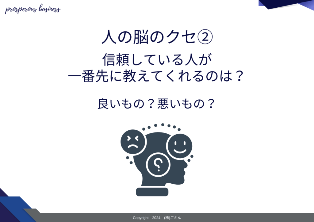 - 11 人の脳のクセ②「信頼している人は最初に良いものを勧めてくれる」