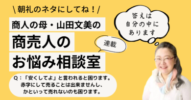 「 お客様とのコミュニケーション 」 一覧 商売人のお悩み相談室 Q&Aで学ぶ。お客様の「お断り言葉」の切り返し6パターン 2025/01/23 商売人のお悩み相談室 Q:「買えないわ。見ているだけ」と言われ、取り付く島もありません。途方に暮れてしまいます。 2025/01/22 商売人のお悩み相談室 Q:声掛けしても無視されると、しない方がいいのかと悩みます。 2025/01/22 商売人のお悩み相談室 Q:「年金暮らしなの」と言われると、クロージングができません。「大変ですね」とも言えず躊躇... 2025/01/22 商売人のお悩み相談室 Q:「いつも百貨店で買っているの」と繰り返されると、「どうせ小さな店さ」と腹立たしくなりま... 2025/01/22 商売人のお悩み相談室 Q:「安くしてよ」と言われると困ります。赤字にして売ることは出来ませんし、かといって売れな... 2025/01/22 商売人のお悩み相談室 Q:上からは高額品を売れと言われますが、お客様から「高いわ」と言われるのがつらいです。 2025/01/22